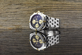 Breitling Old Navitimer D13022 Blue Dial Stahl Gold very Nice Vintage B&P 1995
