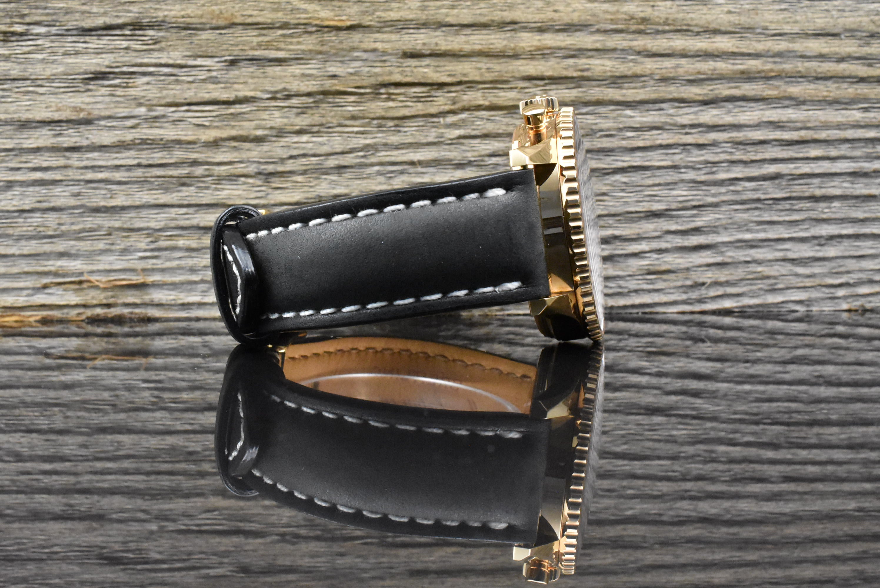 Armband: schwarz / graues Vintage Lock Kalbslederarmband & 18k Roségold Dornschließe