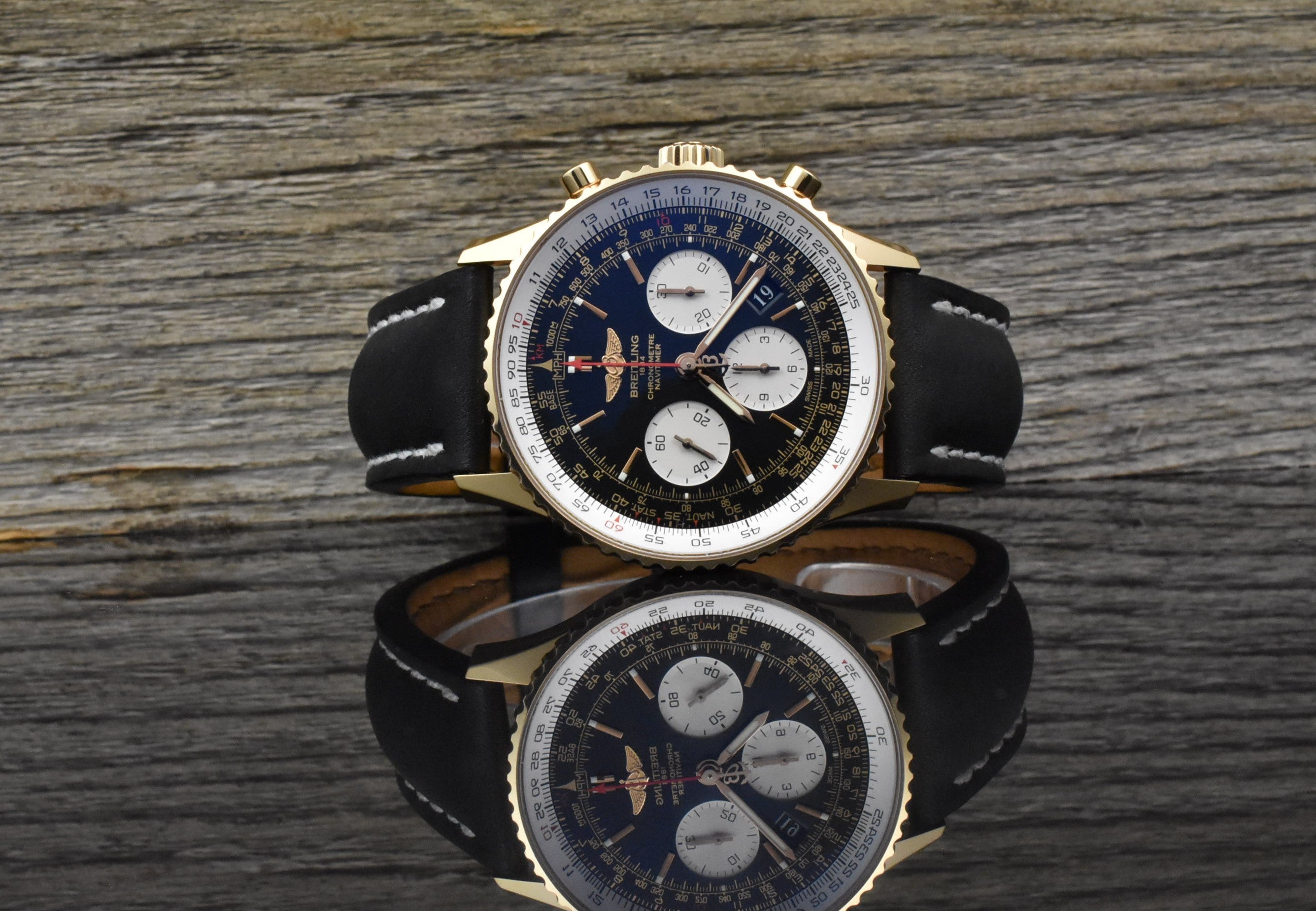 Lieferumfang: Breitling Box mit Überkarton & Garantie Zertifikat mit QR-Code, Gebrauchsanleitung, Rechenschieber, Rechenschieber Anleitung, Karten Etui und ein Breitling Booklet