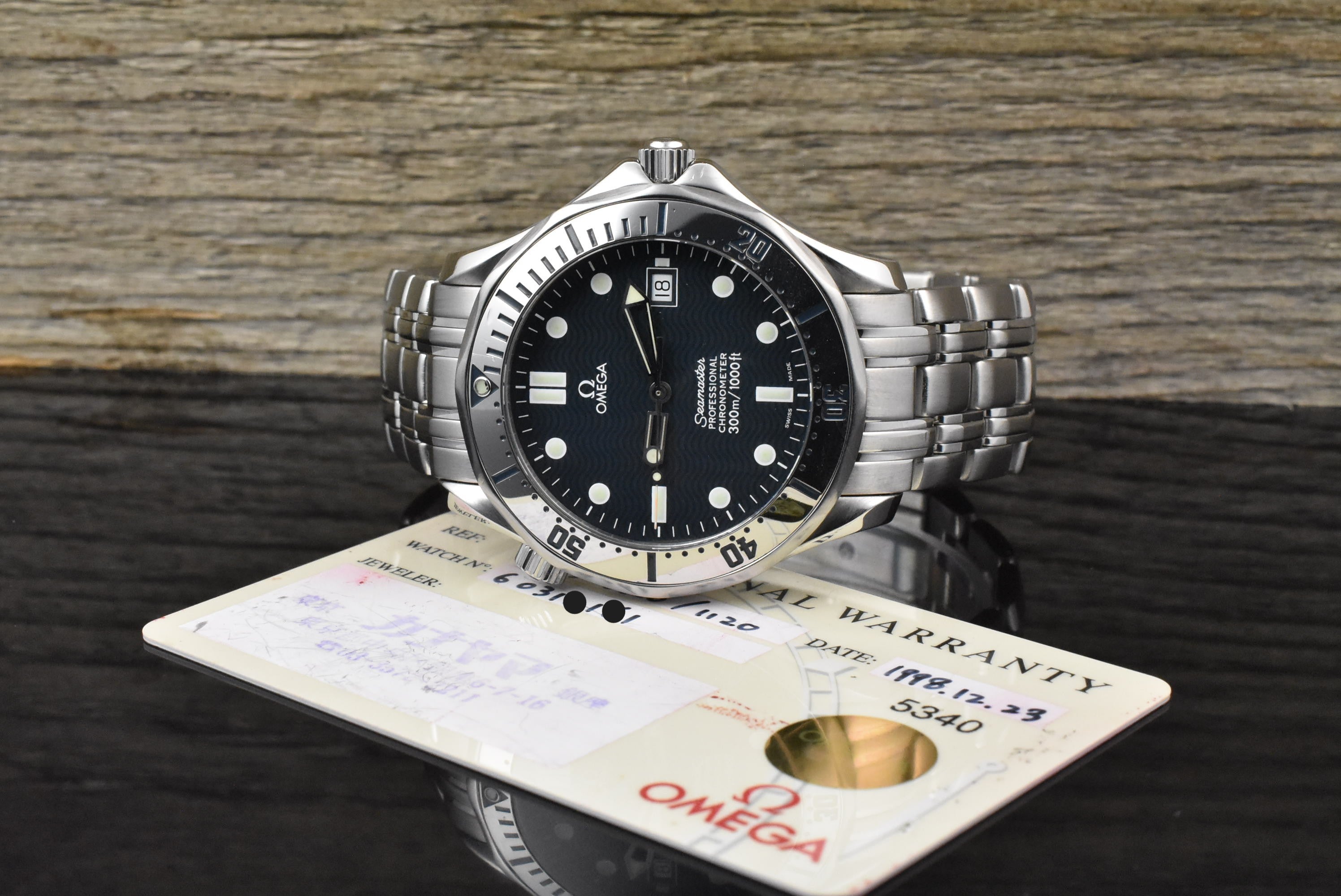 IKAN hier gibt es die Uhr, an alle Freunde des guten Geschmacks! Angeboten wird eine sehr schöne Vintage Omega Seamaster Diver 300M Automatic 41 Blue Wave Dial Referenz 2532.80.00 in Stahl aus dem Jahr 1998 - Omega Vintage Zertifikat