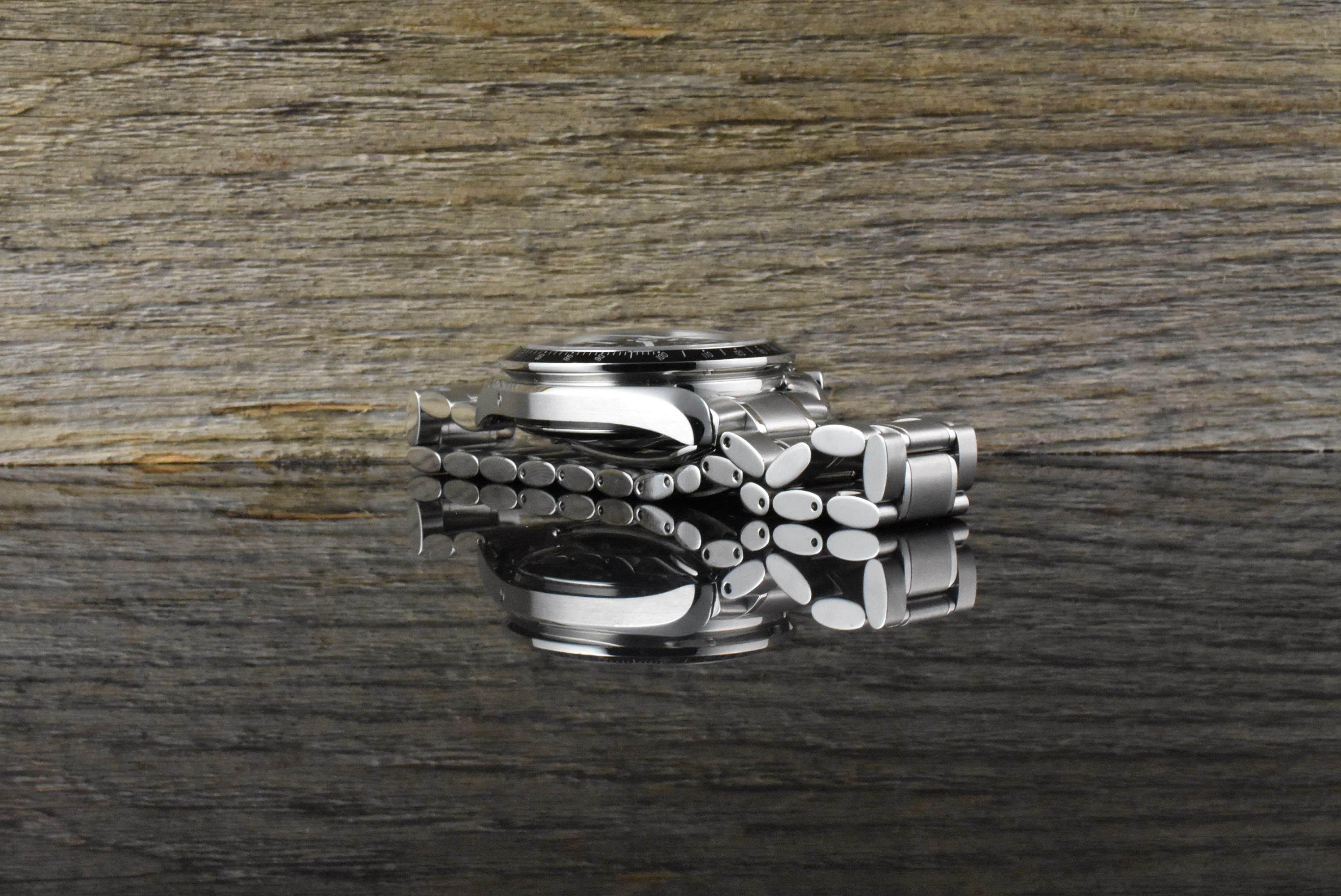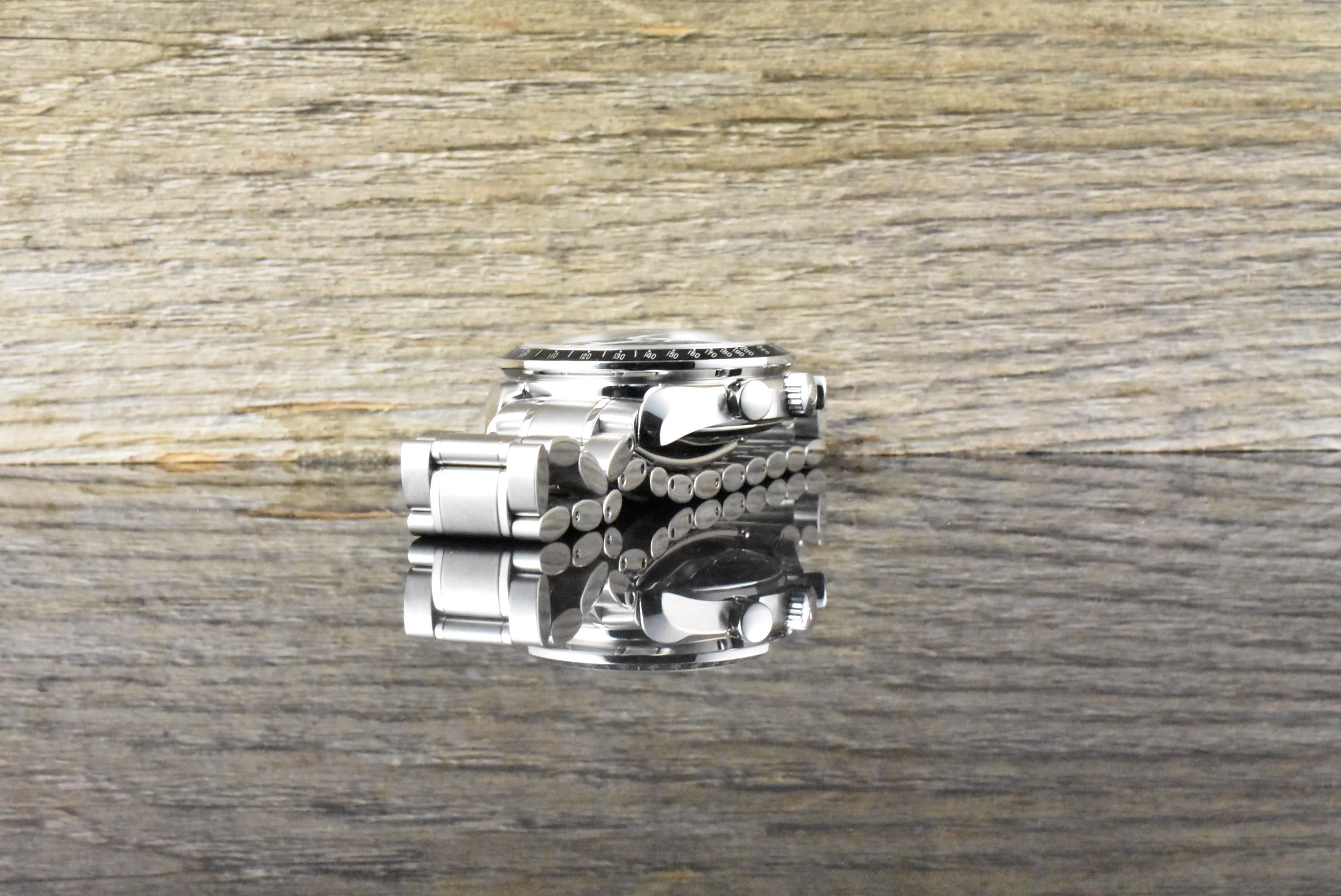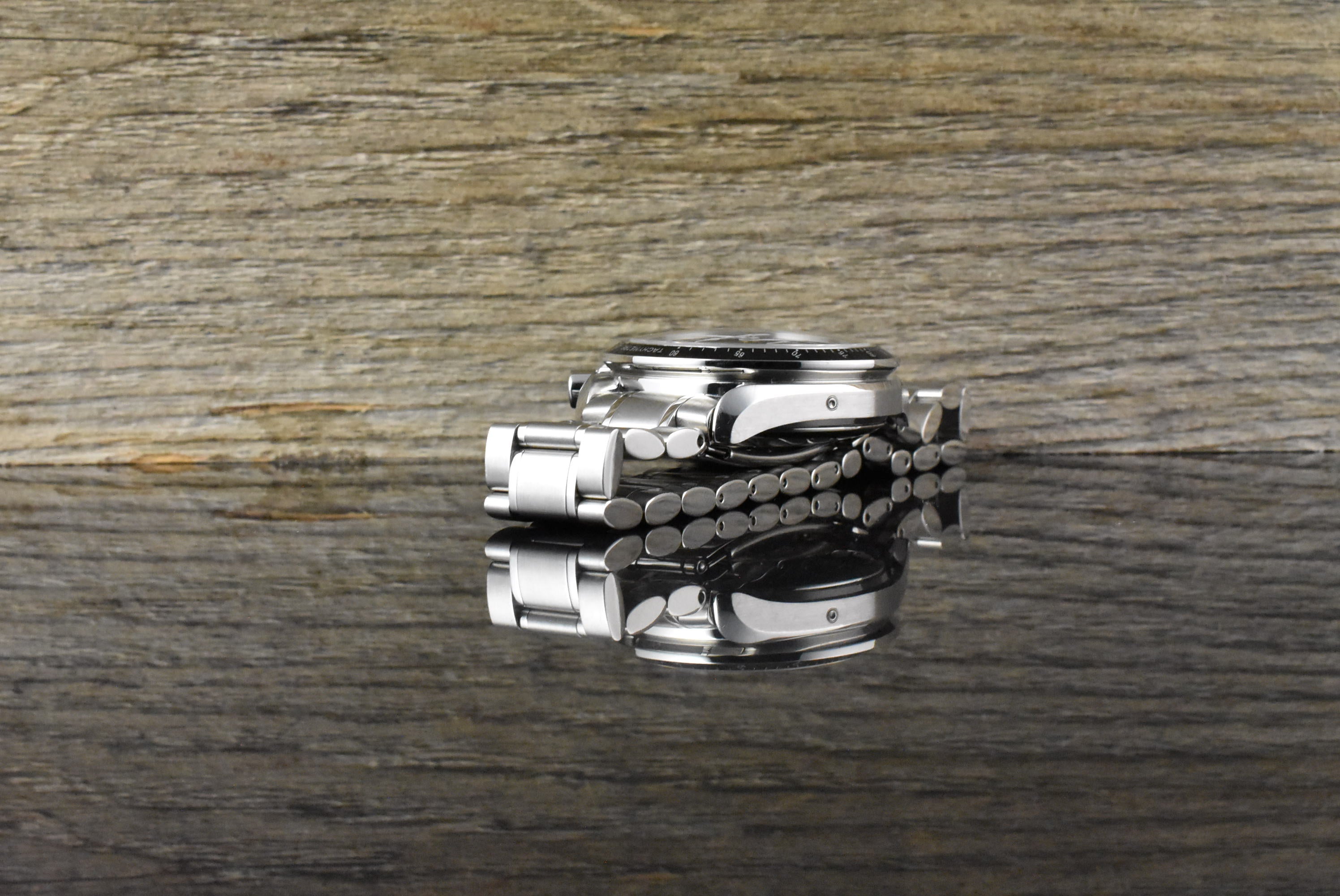 Lünette: Stahl – schwarze Tachymeter Einlage