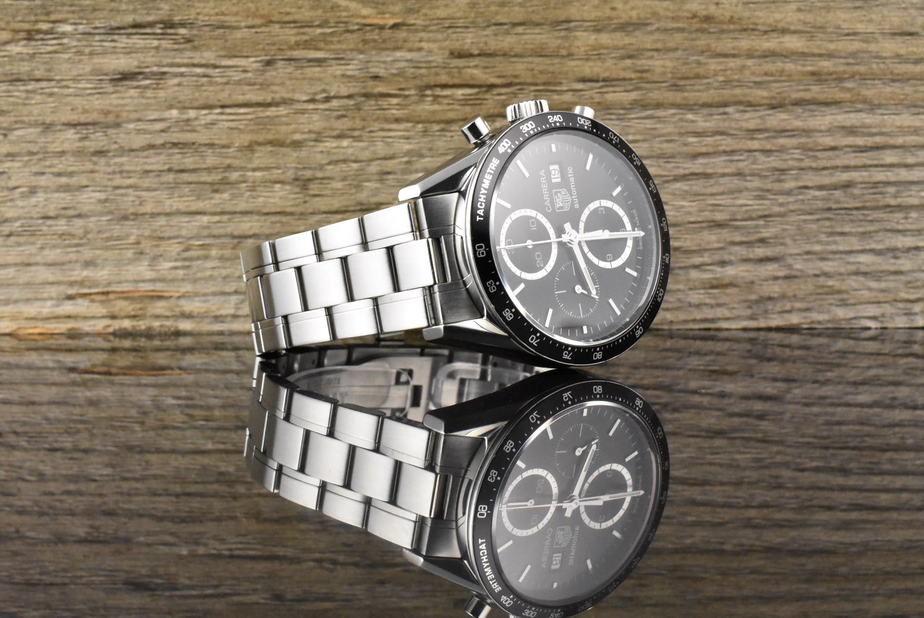 IKAN hier gibt es die Uhr, an alle Freunde des guten Geschmacks! Angeboten wird ein schöner TAG Heuer Carrera Calibre 16 Chronograph Referenz CV2010 in Stahl mit einem schwarzen Ziffernblatt aus ca. dem Jahr 2007!