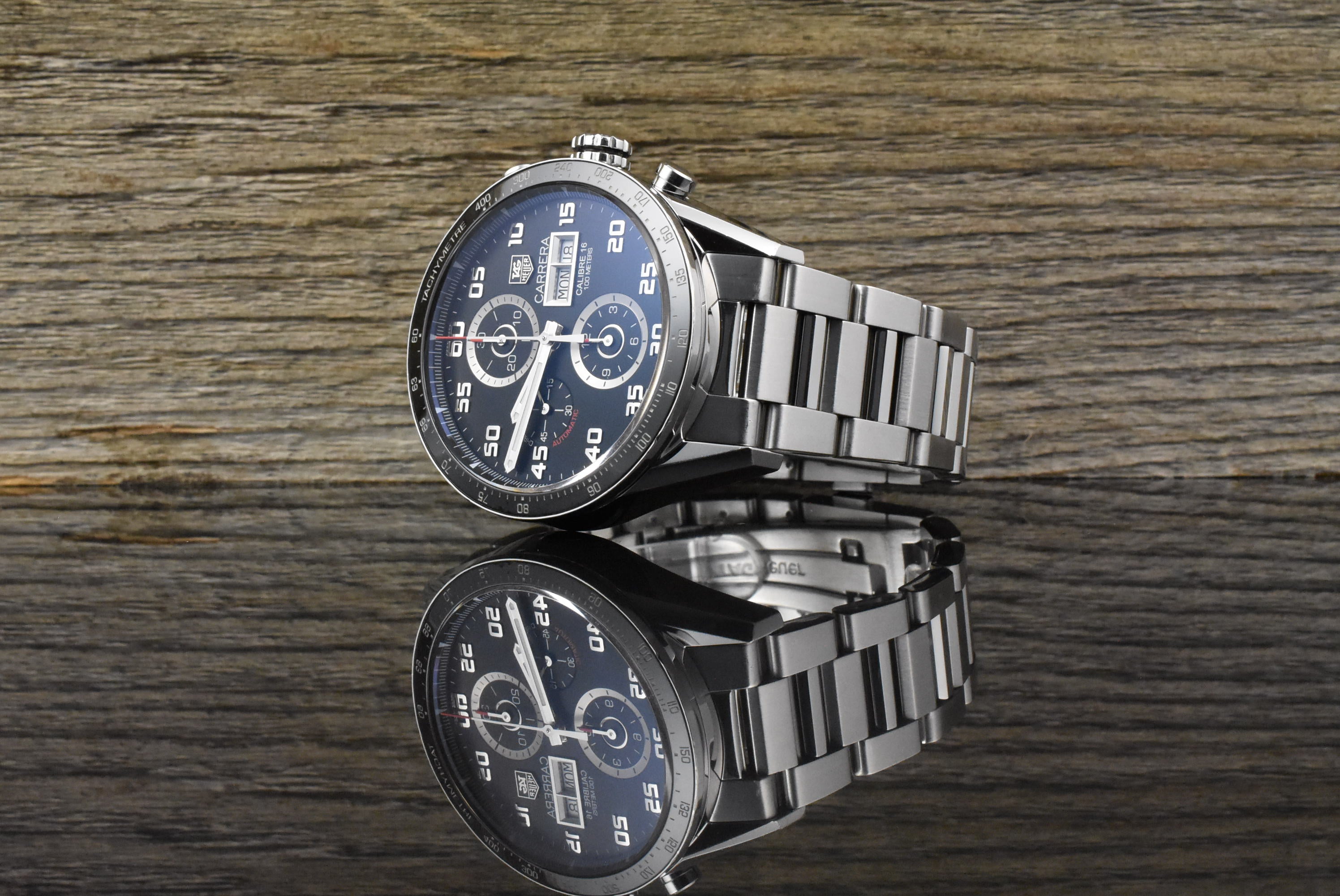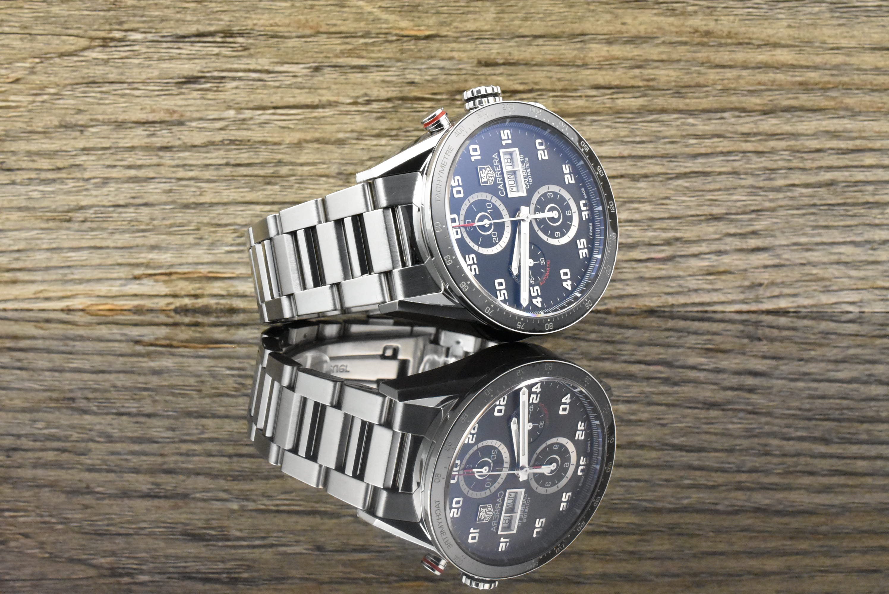 An alle Freunde des guten Geschmacks, angeboten wird ein schöner unpolierter Tag Heuer Carrera Calibre 16 Day Date Chronograph 43MM Referenz CV2A1R.BA0799 in Stahl und schwarzer Keramik Lünette aus ca. dem Jahr 2010!