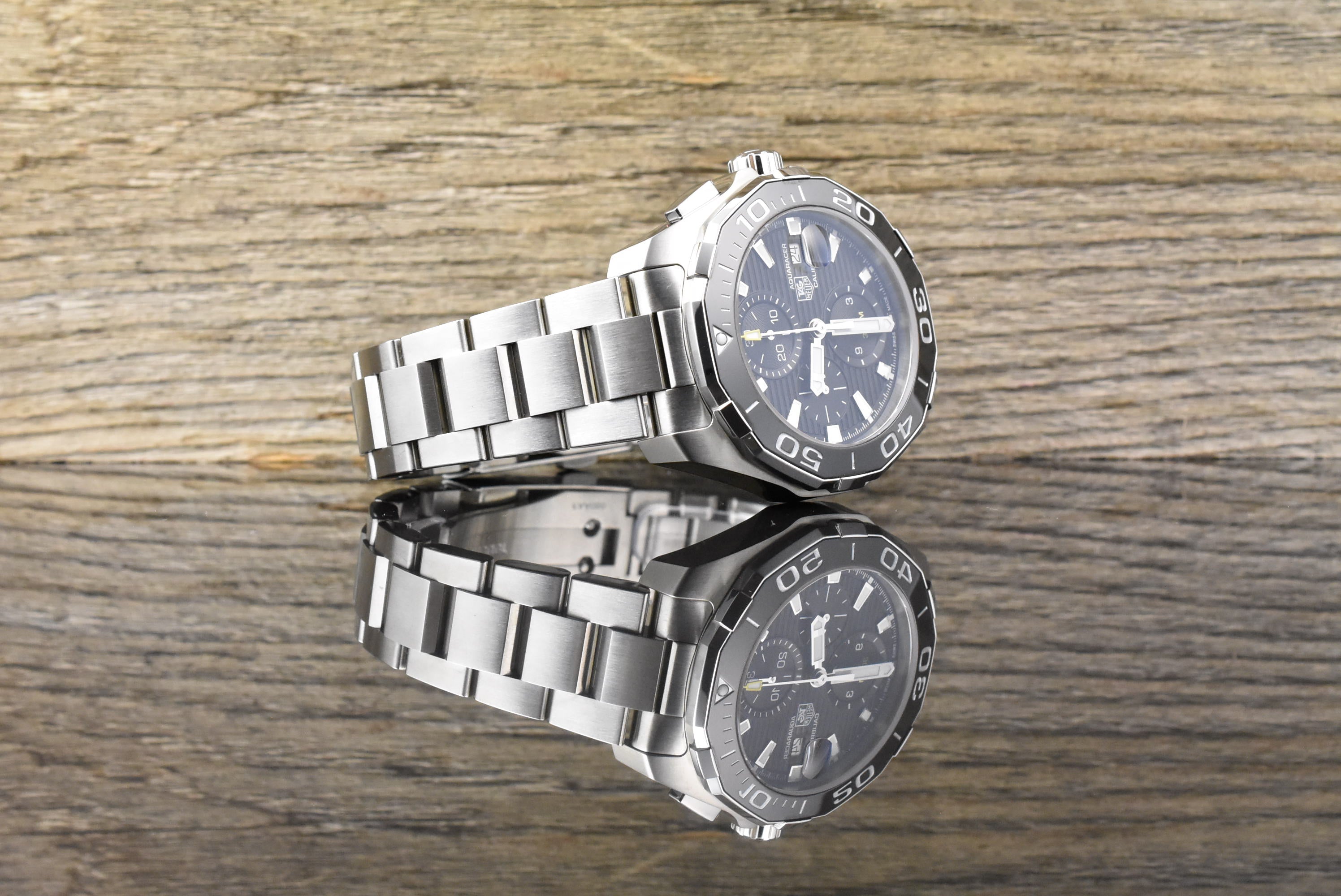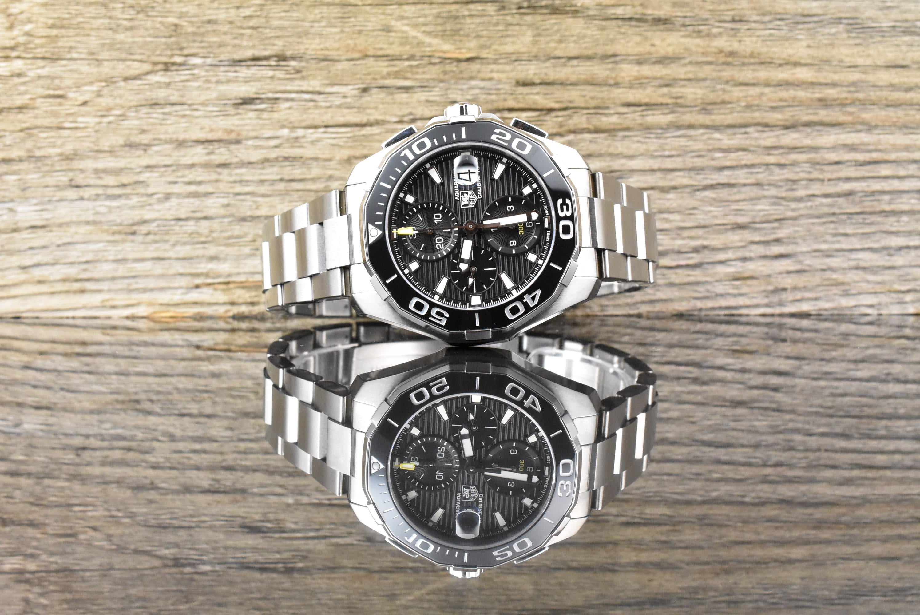 An alle Freunde des guten Geschmacks, angeboten wird ein sehr schöner Tag Heuer Aquaracer 300M Calibre 16 43MM Chronograph Referenz CAY211A.BA0927 in Stahl und schwarzer Keramik Lünette aus dem Jahr 2017 mit Box & Papieren!