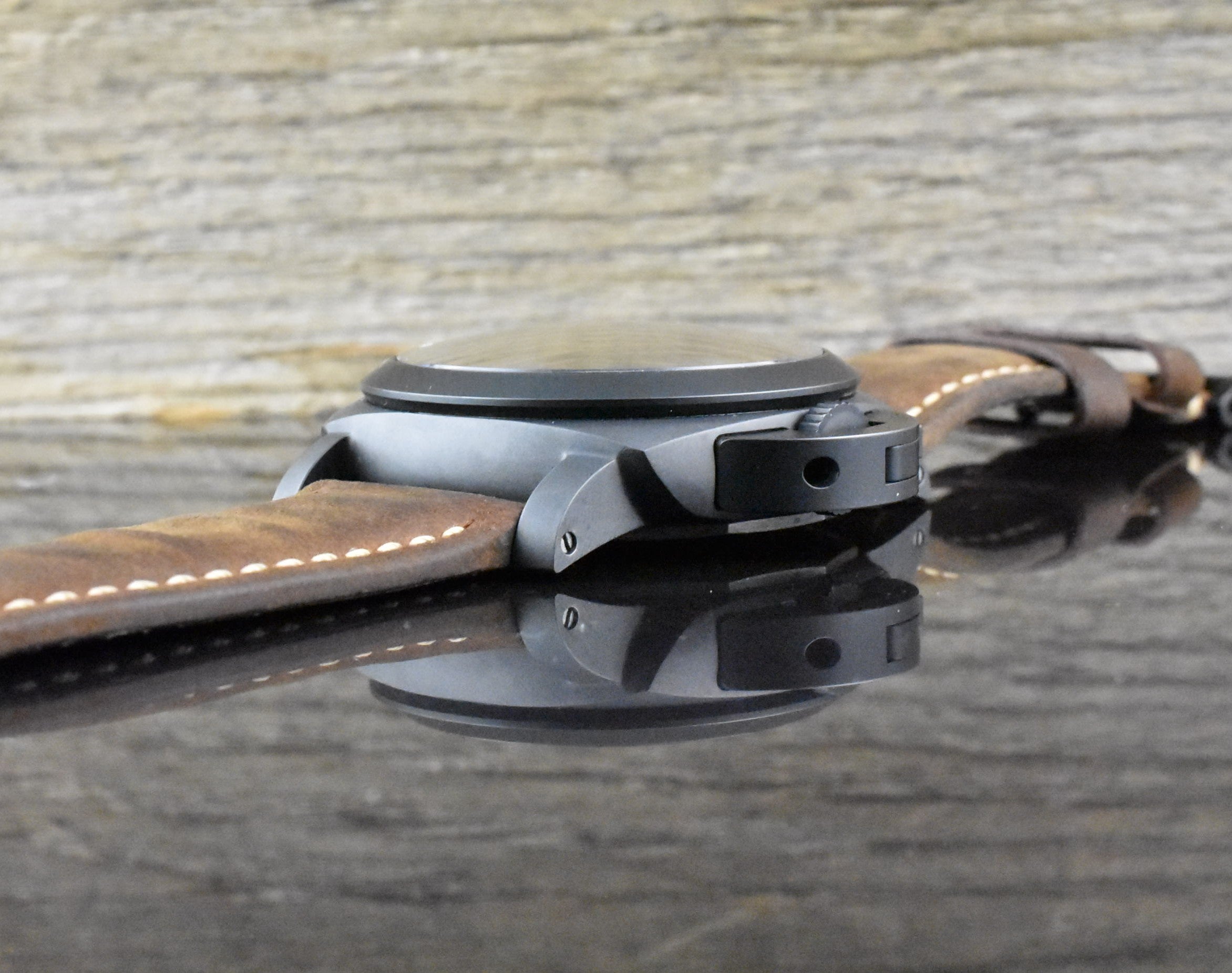 Ziffernblatt: schwarzes Sandwisch Ziffernblatt – Indexe sind in das Ziffernblatt eingelassen
