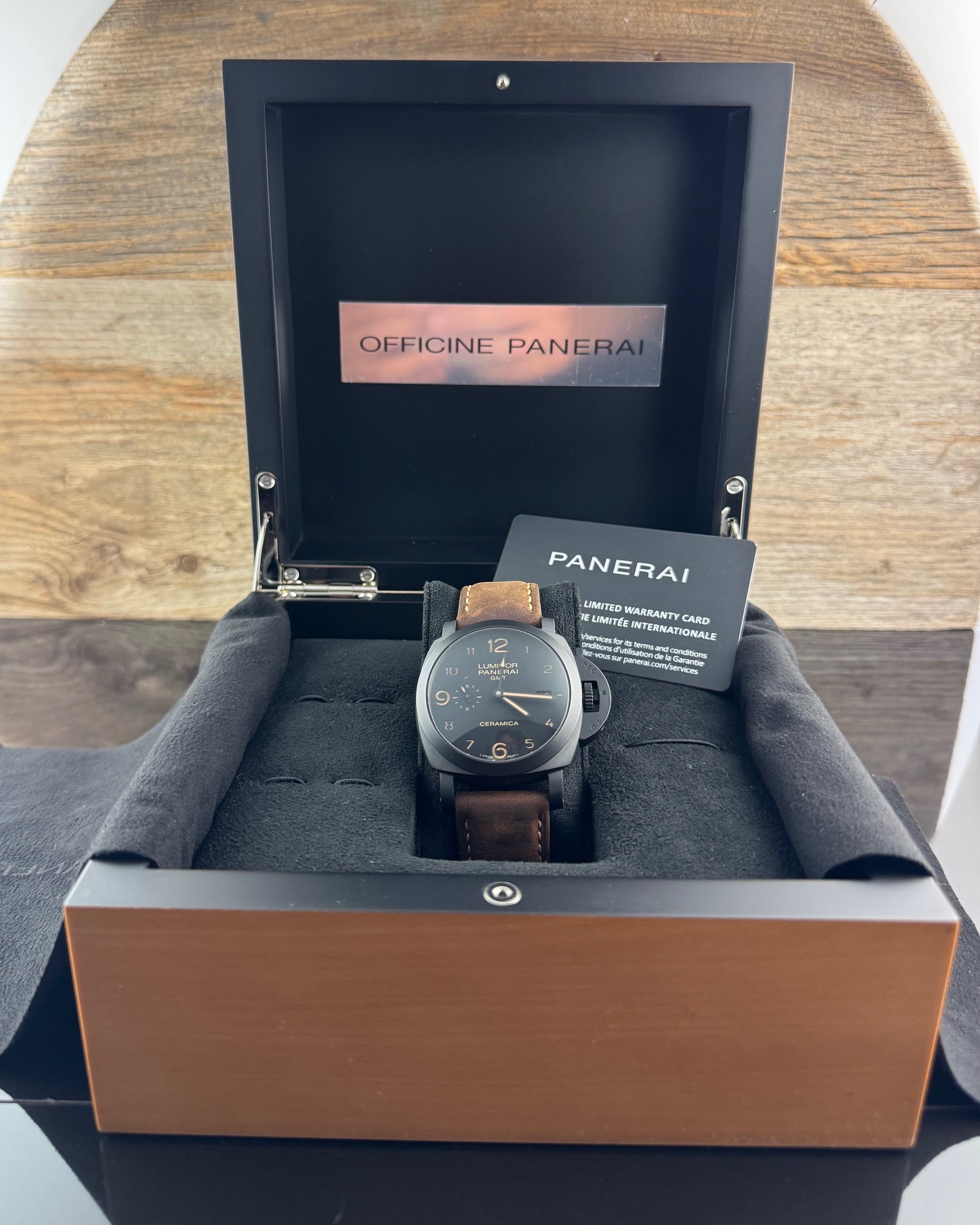 An alle Freunde des guten Geschmacks, angeboten wird eine sehr schöne Panerai Luminor 1950 3 Days GMT Ceramica Reverenz PAM00441 aus dem Jahr 2018 mit Box & Zertifikat!