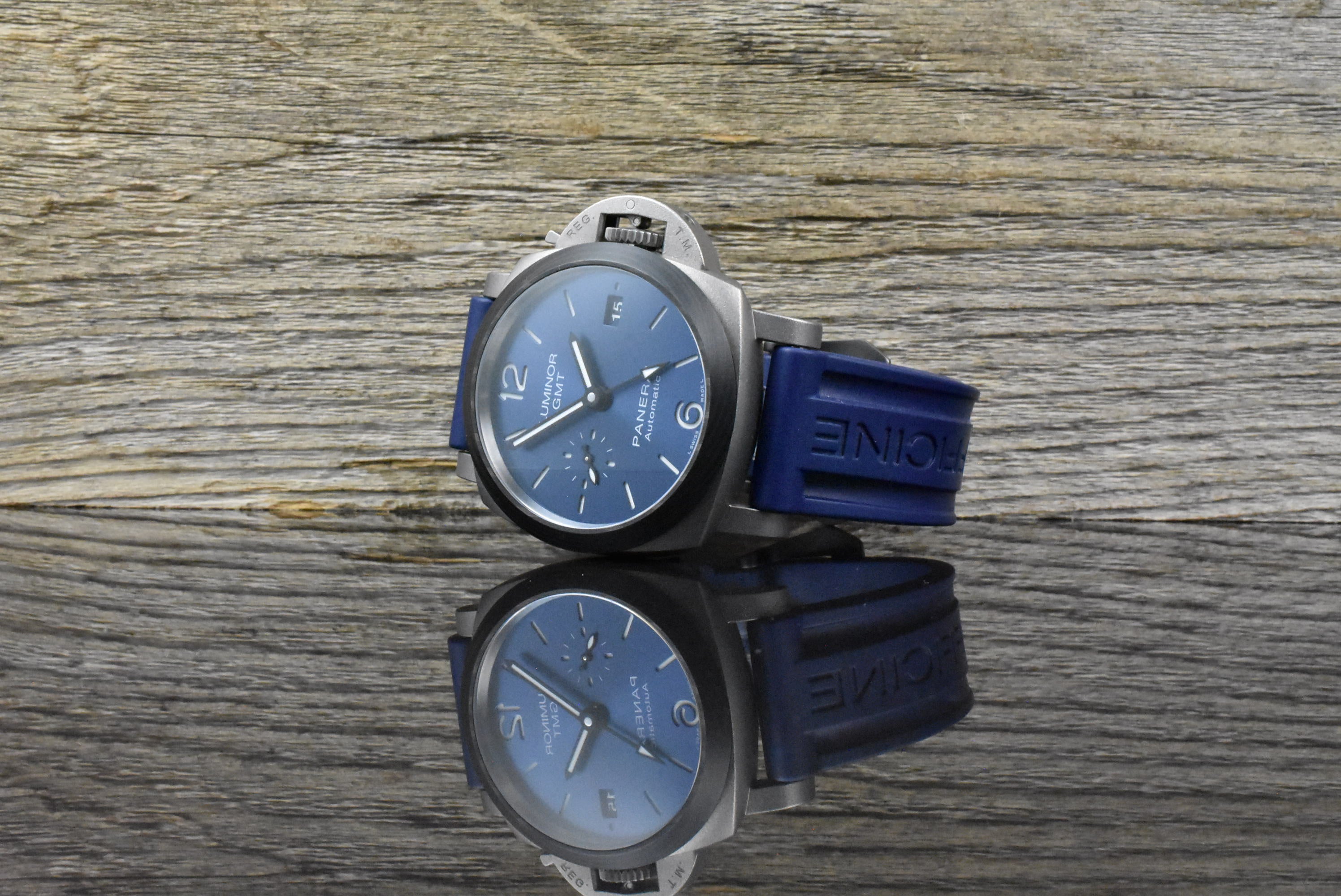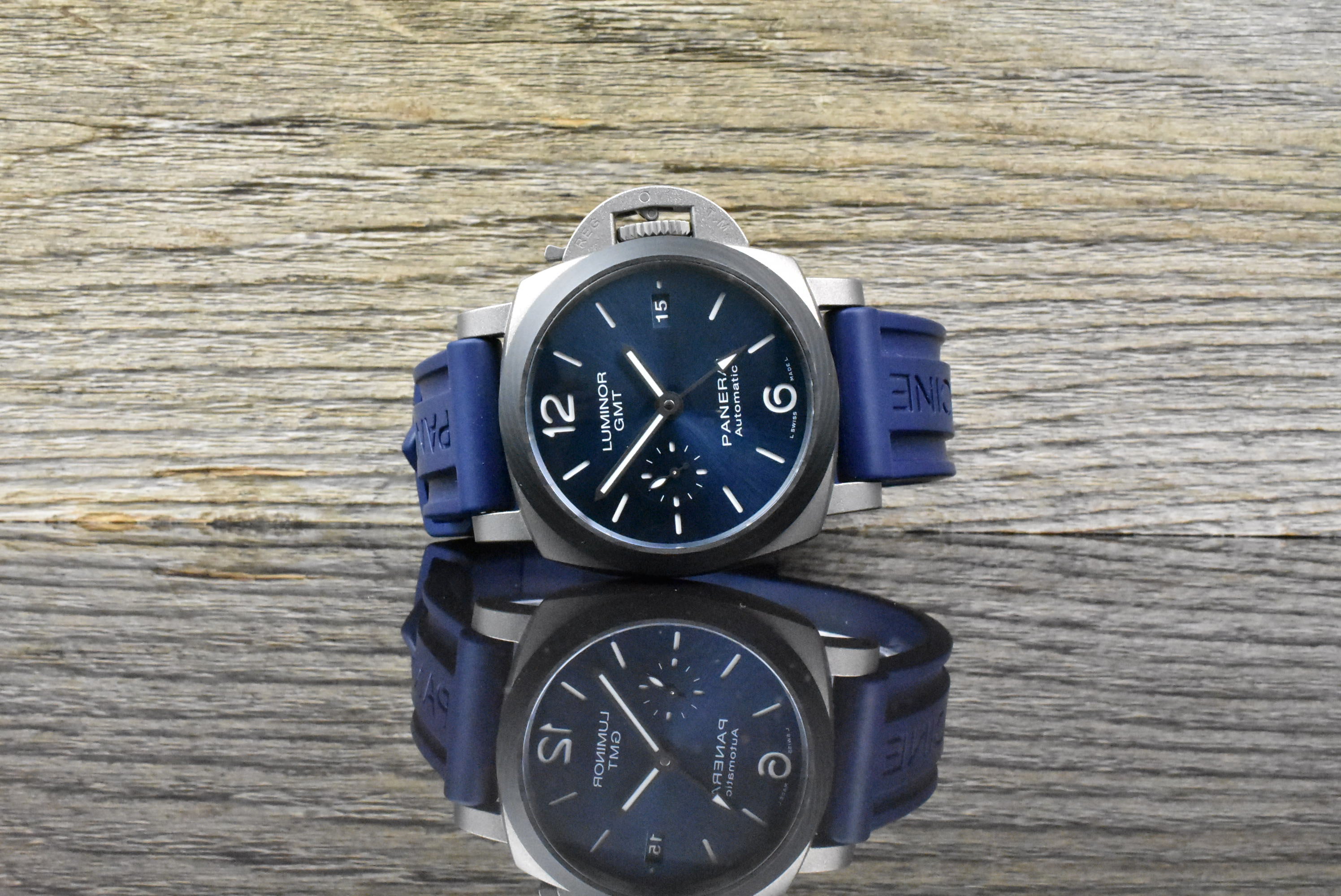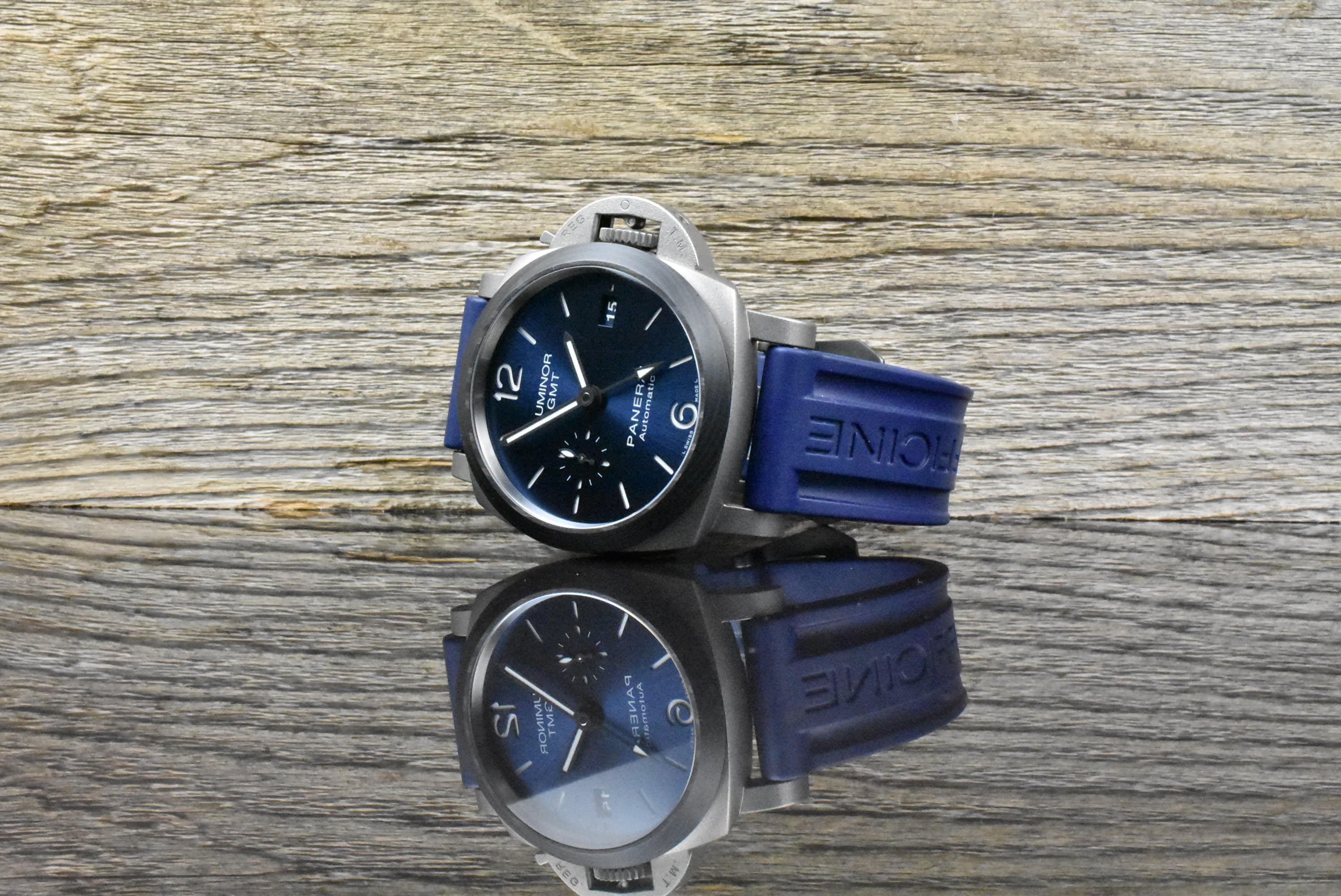Werk: Automatik, Datum, zweite Zeitzone (GMT) – weltweite Panerai Garantie bis April 2028