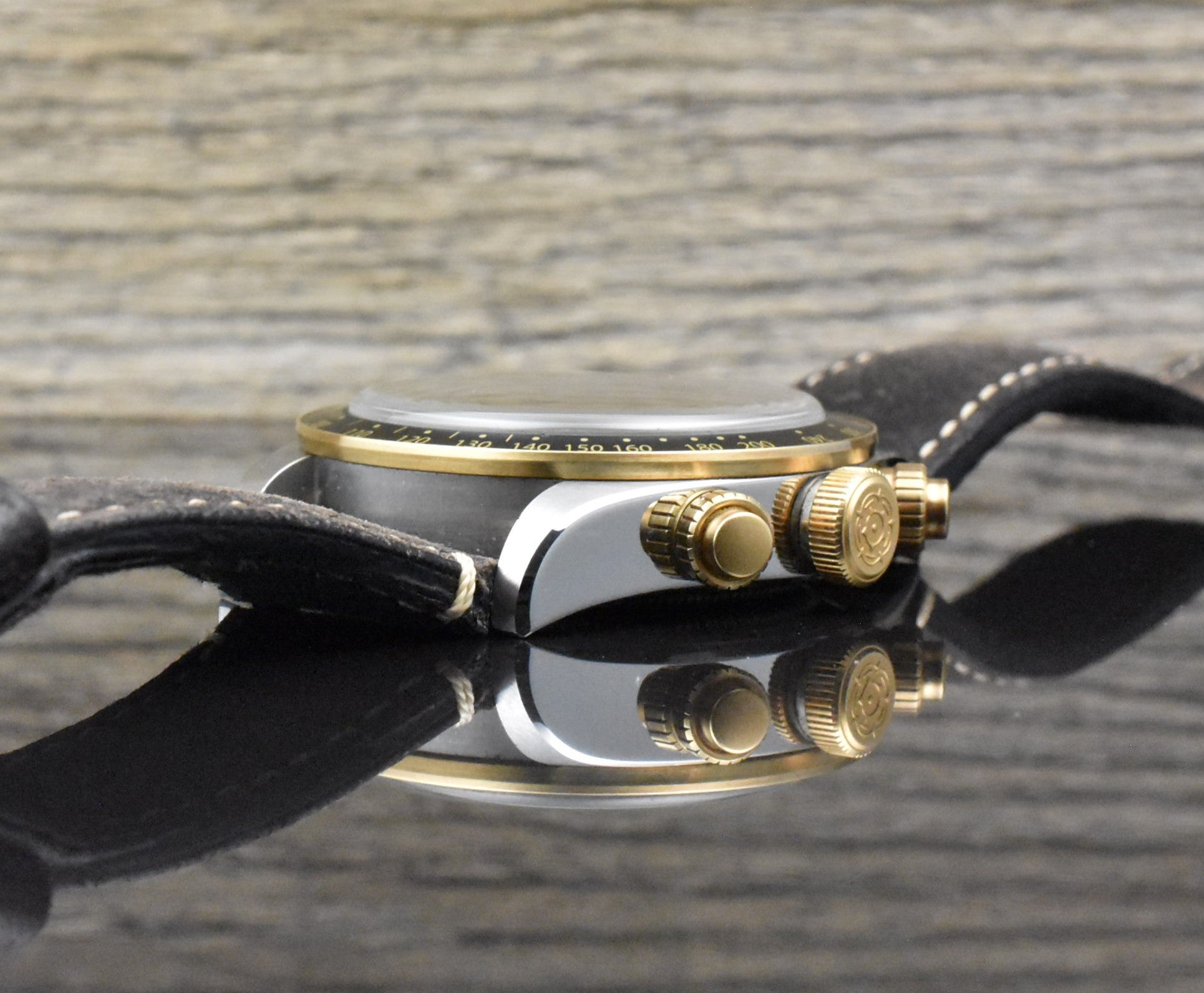 Ziffernblatt: Schwarz mit goldenen Chronographen