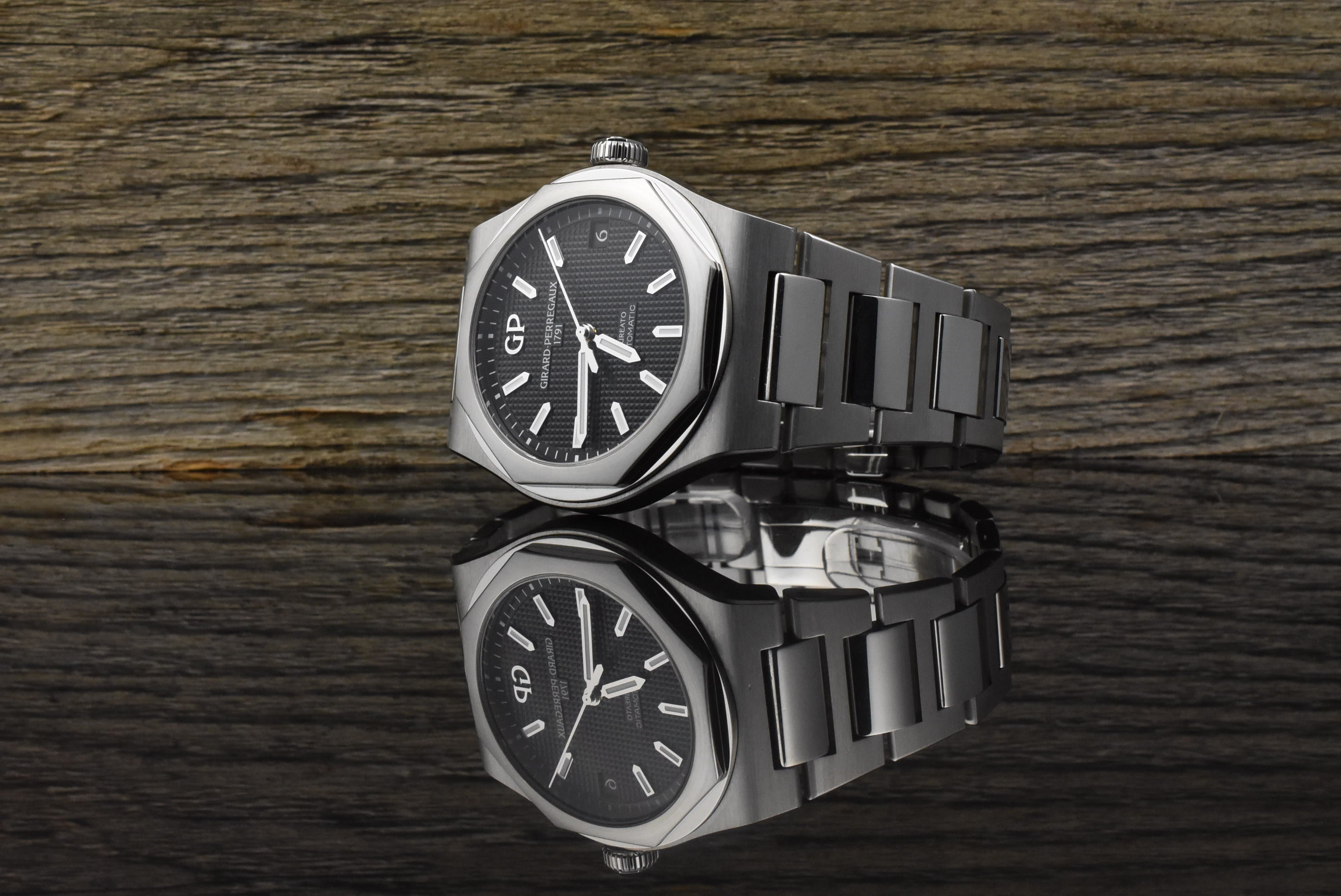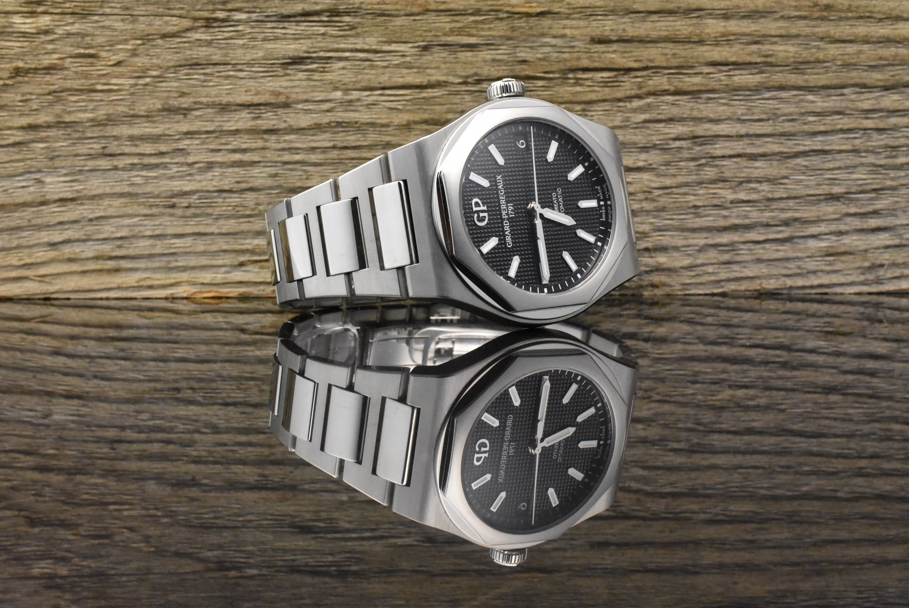 IKAN hier gibt es die Uhr, an alle Freunde des guten Geschmacks! Angeboten wird eine sehr schöne unpolierte Girard-Perregaux Laureato 42 Automatic Reverenz 81010-11-634-11A in Stahl aus dem Jahr 2024!