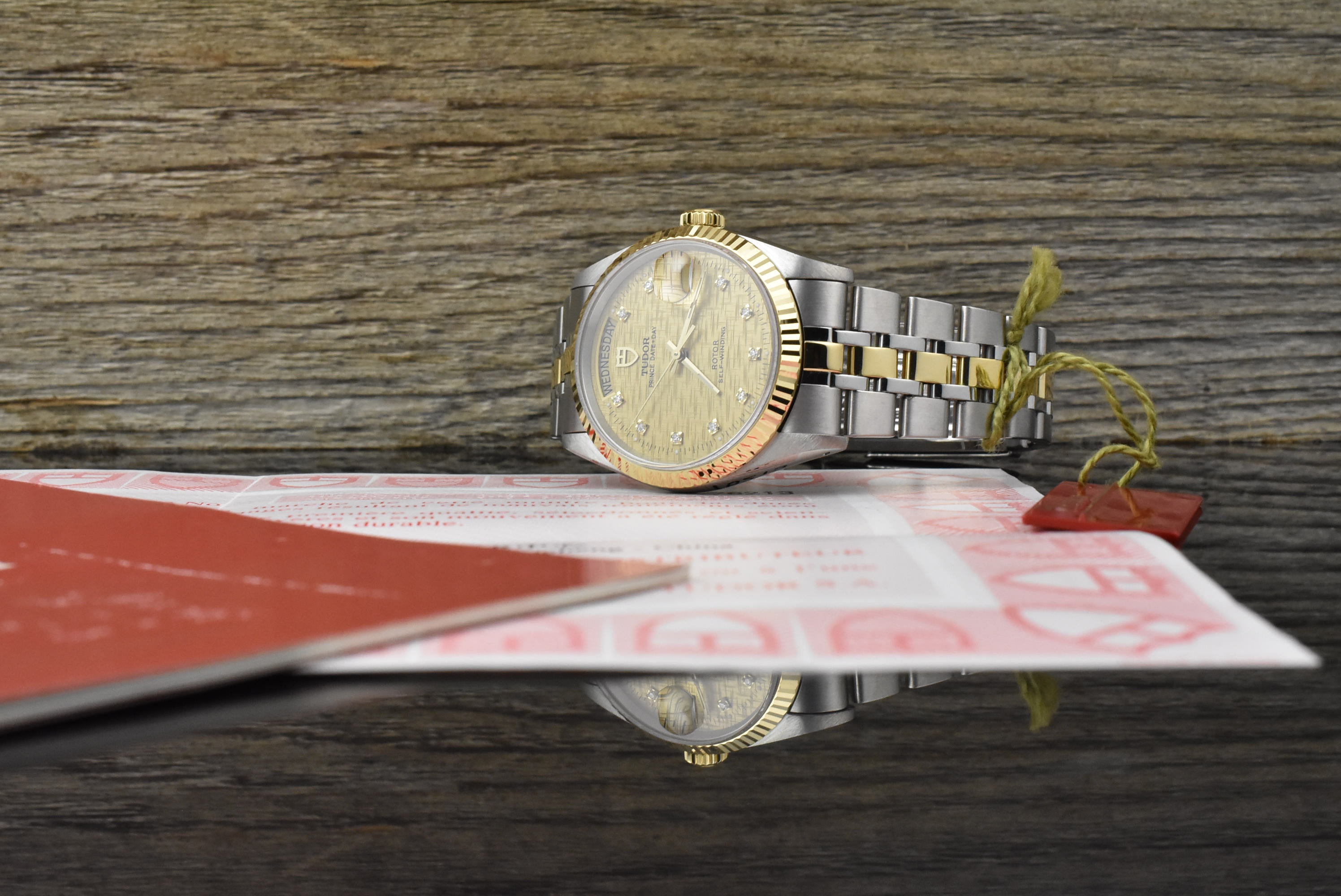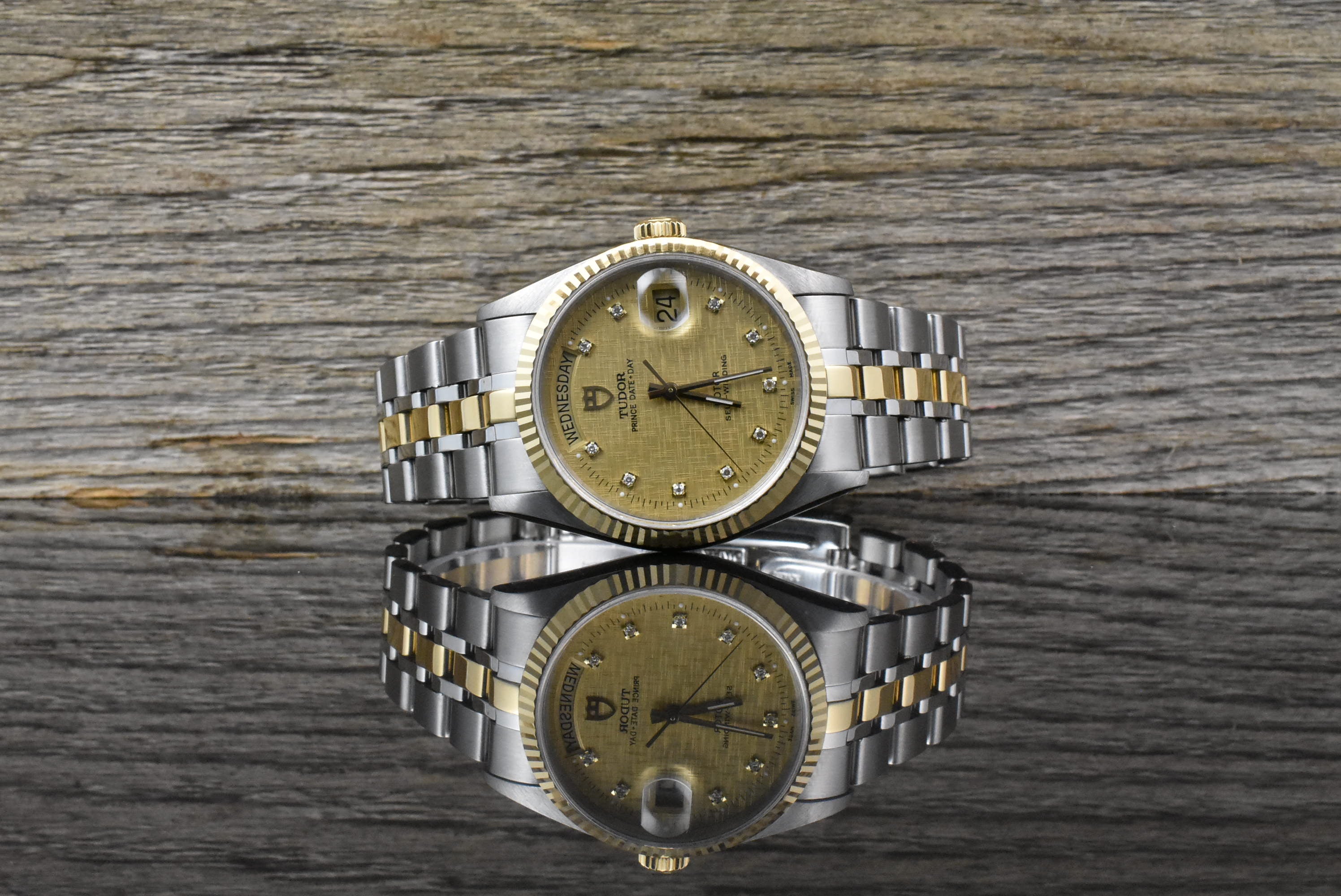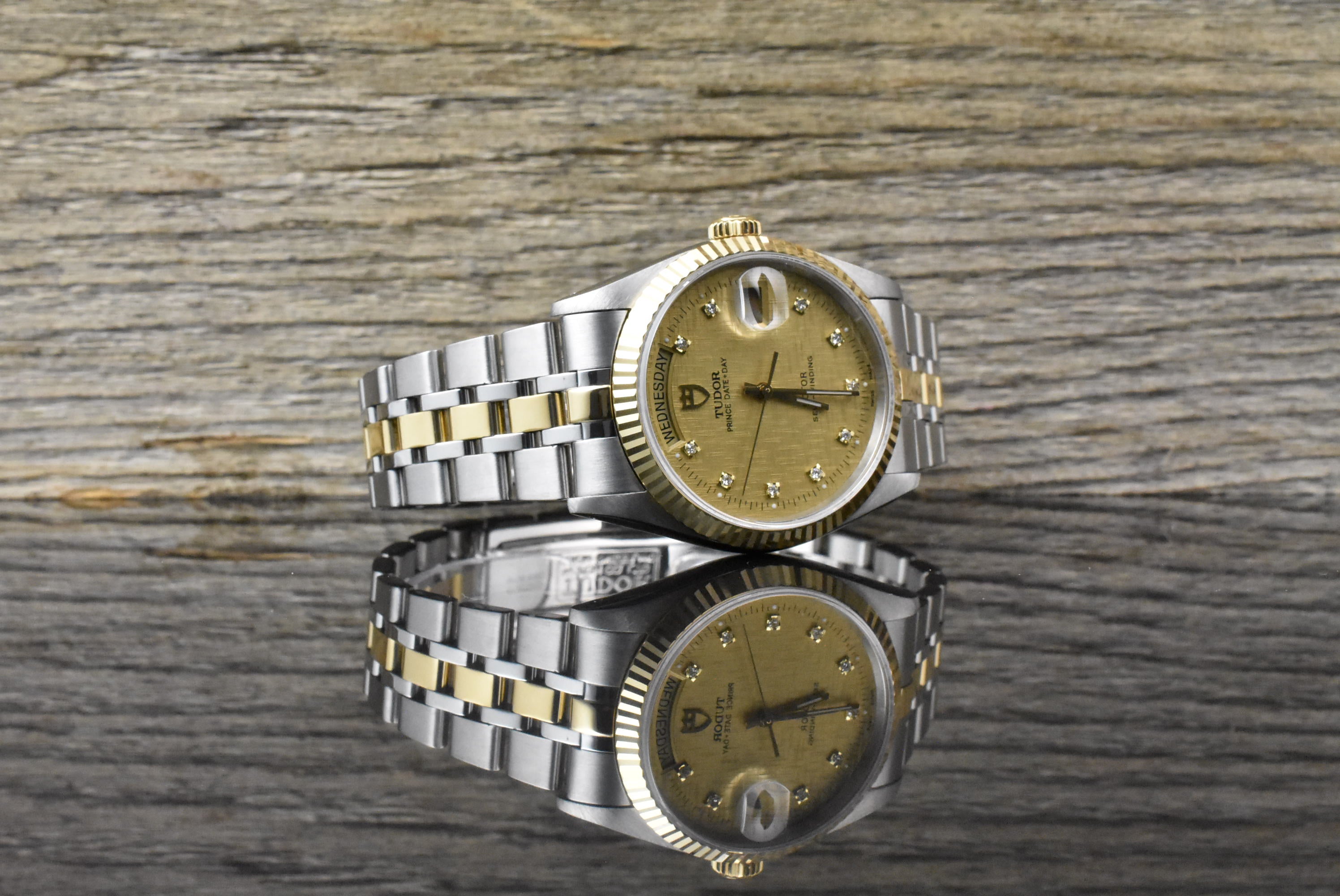 An alle Freunde des guten Geschmacks, angeboten wird eine sehr schöne Tudor Prince Date Day Reverenz 76213 in Stahl / Gold mit einem edlen goldenen Linen Diamant Ziffernblatt aus ca. dem Jahr 2006!